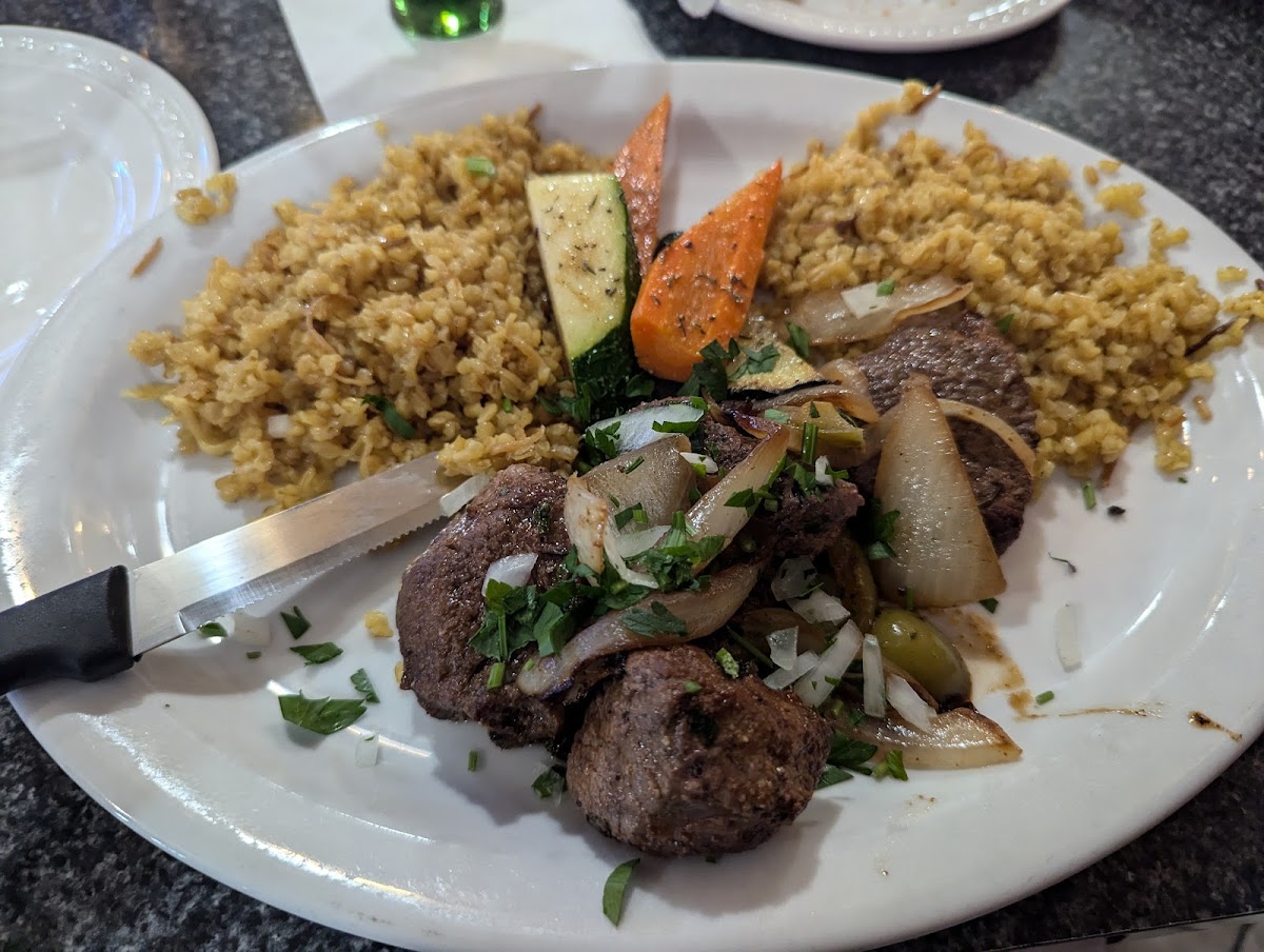 Not gonna lie, I was a bit scared, but this is actually a really nice Armenian themed restaurant. Servers are wonderful! I ordered the Armenian Combo and didn't realize it would come with bread and choice of a side dish. For just under $23.00, I think that was a great deal. The lamb and rice were my favorite. The meatball thing wasn't bad either. Though I would've like to have more than two pieces of lamb.